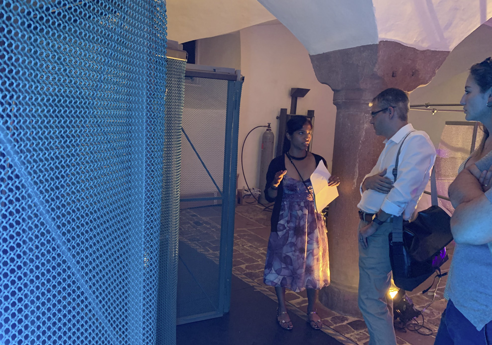 As alphamesh does, however, wish to continue to use light as a medium through which to accent its products, the guests present at the international sales meeting were treated to a breath-taking artistic performance which displayed the diversity of the company’s ring meshes. In the vaults of the castle, these ring meshes were pulled tightly into frames before being twisted, illuminated by colored neon lights and veiled in clouds of smoke – creating a dynamic interplay between light and shadow. By displaying their products in this manner, alphamesh was able to fascinate sales partners around the globe and, once again, demonstrate its extensive design potential.